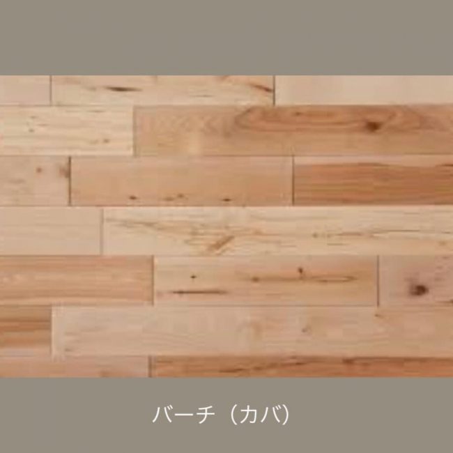 バーチは寒冷地に育つ樹木。木目のバラつきやゆがみが少なくソフトな印象のバーチは、すっきりした清潔感を演出できます。キラリと光る放射杢を持つのが特徴で、適度な堅さがあり、比較的お手入れしやすいのが特徴です。